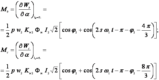 Analog se calculeaza cuplul dezvoltat de fazele by si respectiv cz si se obtine: