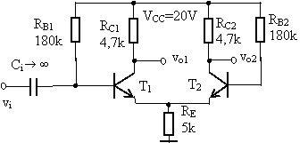 a) Care sunt potentialele de c.c. n colectoarele celor doua tranzistoare, daca īn emitoare VE=2,5V ?