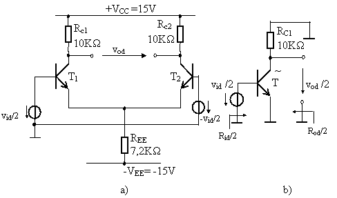 b) Se da semicircuitul de mod diferential (pentru variatii mici de semnal) din figura b). Redesenati schema īnlocuind T cu modelul sau la semnal mic si joasa frecventa.