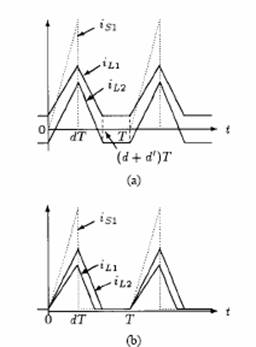 Sa presupunem ca putem face inductoarele din convertoarele Cuk, Sepic si Zeta sa se comporte ca L0. Circuitele pot fi atunci privite ca si combinatii in cascada de convertoare de baza in mod discontinuu. Aceasta poate fi realizata introducand o dioda in serie cu fiecare inductor ca in figura 5 (d) – (f). In aceste conditii, inductorii sunt L0 cum se ilustreaza in figura 6(b). Este clar ca tipul de operatii in mod discontinuu difera fundamental de cel descris in subsectiunea precedenta, unde diodele in serie nu erau prezente. A se nota ca este deasemenea posibil ca iL2 sa isi asume o operatie in mod continuu pastrand in acelasi timp iL1 discontinuu. Ne vom ocupa de acest caz mai tarziu.