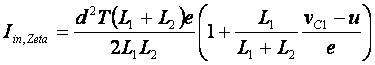 Pentru convertorul Zeta, curentul de intrare cand S1 conduce este suma celor doi curenti din inductor si este zero cand S1 este blocat. Deci curentul de intrare in medie, in modul de lucru specificat este :