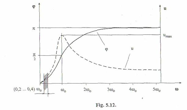 La aceste viteze de oscilatie defazajul unghiular dintre pozitia centrului rotii si cea a masei neechilibrate este aproximativ nul, asa cum rezulta din figura 5.12. Prin urmare, pozitia centrului rotii reprezinta chiar pozitia masei neechilibrate, in antifaza cu care trebuie sa fie amplasata masa aditionala.