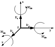 Proiectând cele doua ecuatii vectoriale pe axele unui sistem cartezian Oxyz se obtin sase ecuatii scalare de echilibru :