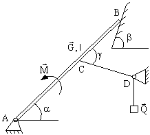 capat are montata o bila de greutate G (figura TC 6.4.1). Bara este articulata cu frecare în