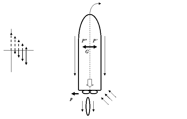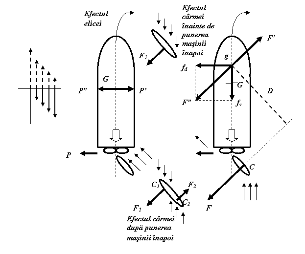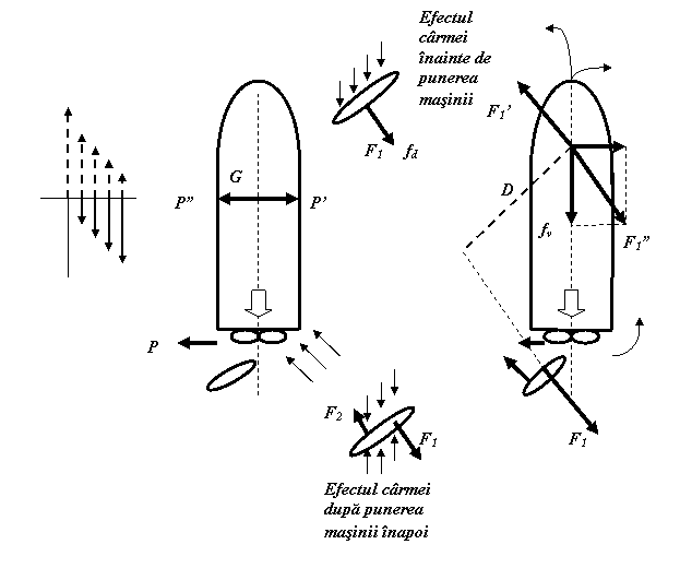 Fig. 4.25. Nava merge înainte, masina înapoi, cârma în ax