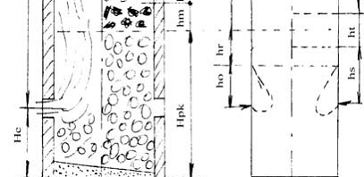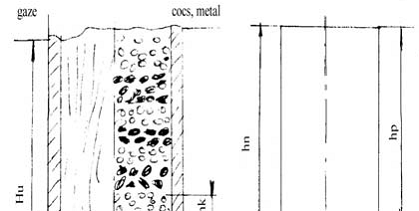 Fig.1.Zonele termodinamice din cubilou: Hc -inaltime creuzet; Hu-inaltime utila;Hpk-pat