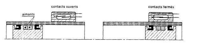 Sub actiunea campului magnetic, contactul se inchide.