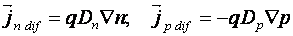 Curentul de difuzie este proportional cu gradientul concentratiei de purtatori: