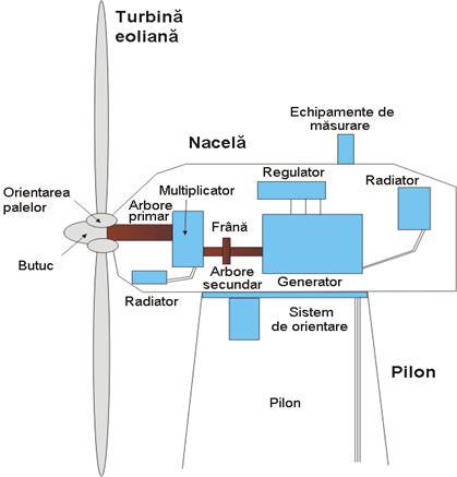 2. Nacela -contine generatorul electric si asigura protectia mecanica a acestuia