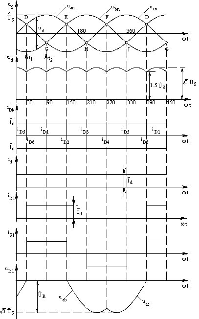 Fig.3.12. Formele de unda pentru redresorul in punte de tip serie S3