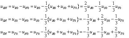 Inlocuind valoarea (3.26) in fiecare din relatiile (3.27) se obtin tensiunile de faza: