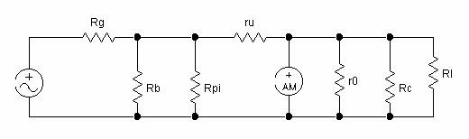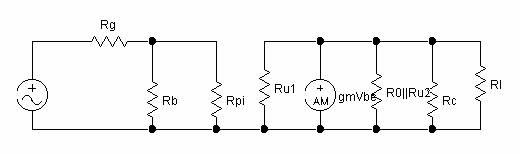AV=V0/Vg=[-gm(r0||rm ||Rc||RL)Vbe] / [(Rg+RB||rp||rm )Vbe/(RB||rp||rm