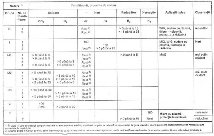 Clasificarea gazelor de protectie din acest standard este cuprinsa în tabelul 4.8.