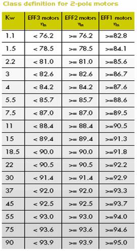 Fig. 2.2. Clasele de eficienta pentru motoarele asincrone cu rotorul in scurtcircuit cu 2 poli.