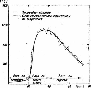 Curba din figura indica corelatia dintre temperatura, gazele calde si durata incendiului conventional izbucnit într-un spatiu închis.