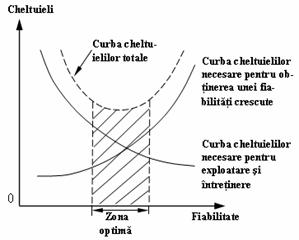 Trebuie precizat ca, cresterea fiabilitatii echipamentelor, utilajelor, instalatiilor etc. necesita cheltuieli de productie suplimentare, dar care se amortizeaza prin reducerea cheltuielilor de exploatare si indeosebi a celor de intretinere si reparatii, dupa cum se poate vedea si in figura 4.