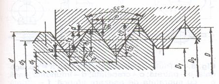 Elementele geometrice ale filetului sunt definite in fig. 7 sunt prezentate elementele standardizate ale filetelor surubului si piulitei complementare.