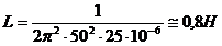 Avand C=25mF si impunand f=50 Hz, rezulta valoarea inductivitatii :