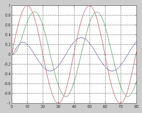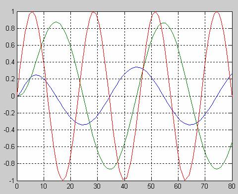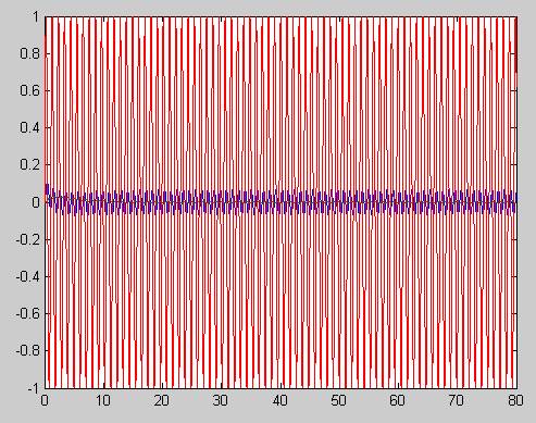 plot(t,x,t,sin(0.275*t))