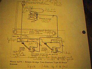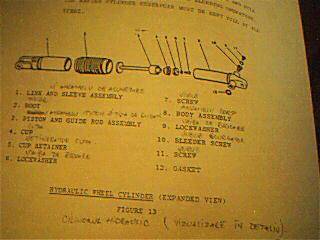 Pentru a face intretinerea cilindrului franei , se indeparteaza piciorul (11) si separat cilindrul si corpul (1) de la legatura si tamburul cilindru (10). Apoi se trage pistonul si tija de ghidare asamblata (5-9) din afara cilindrului. Daca inspectam canalul tevii cilindrului ne arata ca este slefuit , fara gauri sau zgarieturi ansamblul se poate repara cu un echipament de reparare care include pct. 5-9 si 11. Daca e necesar , inlocuiti cilindrul de franare.