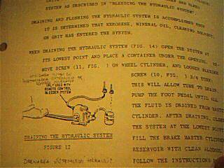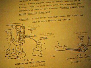 Cand se dreneaza sistemul hidraulic (fig.14) se deschide sistemul la un punct scazut si se pozitioneaza un recipient sub deschizatura. Remiscarea surubului (fig. 1) pe cilindrul mechanism si surubul scurgator de pierdere (fig. 10) cu ¾ intoarceri ; Acest lucru va permite drenajul tevii . Se actioneaza pedala de picior pana cand tot fluidul este drenat din cilindrul etalon , dupa drenaj se inchide sistemul la un punct inferior. Se umple rezervorul cilindrului etalon de franare cu alcool de curatare si se urmaresc instructiunile de scurgere . In timpul spalarii cu jet de apa se tine cilindrul etalon plin tot timpul . Se continua actionarea pedalei de picior pana cand alcoolul care a fost descarcat e curat .