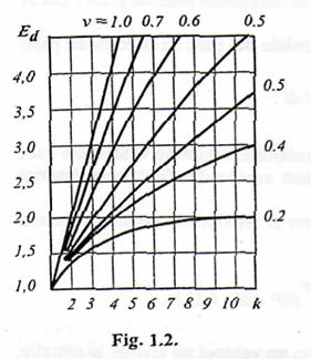 Rezolvand aceasta ecuatie se obtine graficul din fig.1.2., in care v este coeficientul de variatie a rulajului (pentru v < 0,3 s-a considerat legea normala de distributie, iar pentru v > 4 s-a adoptat legea Weibull).