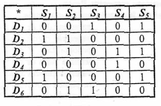 Rezolvarea cea mai comoda a sistemului de ecuatii care reprezinta starea curenta (efectiva) a unui obiect complex se face pe cale matriciala, folosind sistemul de reprezentare liniar; acesta ofera avantajul posibilitatii de tratare a diagnosticarii cu ajutorul tehnicii electronice de calcul sau cu dispozitive electronice de tipul "trece - nu trece' (cu diode sau circuite bistabile, de exemplu). In acest scop nivelului parametrilor de diagnosticare care este inferior valorii limita Dl i se asociaza cifra unu iar celeilalte zero. Se poate intocmi in acest fel o matrice ale carei coloane reprezinta parametrii de stare iar pe linii se introduc valorile citite ale parametrilor de diagnosticare utilizati (tabelul 1.1).