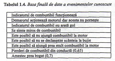 Pentru exemplul analizat, baza de reguli din tabelul 1.2. de la Rl la R7 prezinta privind problema respectiva, iar regula Rl identifica zonele ce trebuie sa fie investigate.
