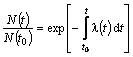 Functia de fiabilitate, folosind o lege de distributie exponentială, este: