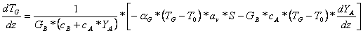 GB*cB*(TG-T0)+GB*YA*cA*(TG-T0) = aG*(TG-TL)*av*S*dz+GB*(TG-