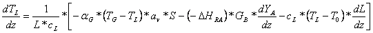 cL*[L*(TL-T0)+dTL]+ aG*(TG-T0)*av*S*dz+(- DHRA)*GB*dYA=L*cL