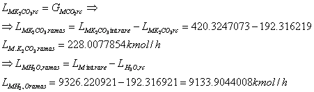 c1 = concentratia molara a K2CO3 în solutie, kmol/m3;