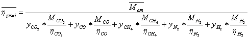 Vâscozitatea amestecului gazos, la intrare si la iesire, se calculeaza cu formula: