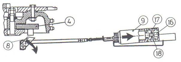 Se ajusteaza distanta de franare prin schimbarea tensiunii reglata anterior ansamblului arc disc (11)