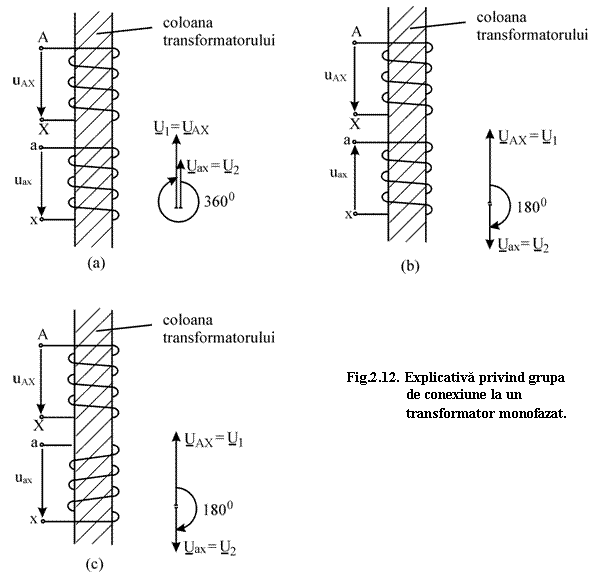 Fig.2.12. Explicativa privind grupa de conexiune la un transformator monofazat