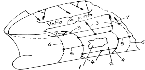 Elementele din figura 3.5.2 sunt urmatoarele: 1 - bordaj; 2 - perna cu câlti sau panou cu borduri moi; 3 - scândura; 4 - grinda de lemn; 5 - pene de lemn ce se bat cu ciocanul în sens contrar; 6 - element de rezistenta din structura navei; 7 - perete vertical etans.