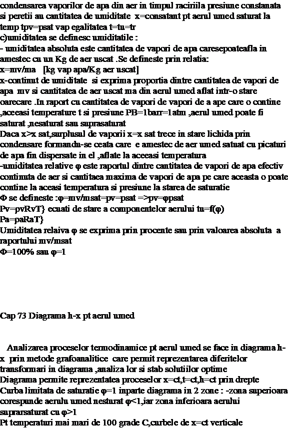 Principalele marimi de stare ale aerului sunt:presiunea, temp si umiditatea. In functie de temo si presiune ce exprima si celelalte marimi de stare ale aerului umed