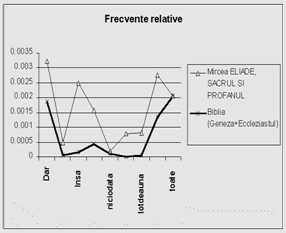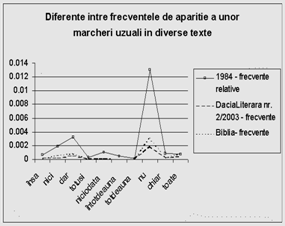 Figura 1. Frecvente relative ale unor marcheri in doua texte |