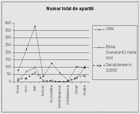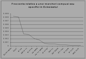 este diferit. Propunem deci ca un nou indicator al specificitatii textului (si ca un nou concept, introdus de titularul de grant) frecventa inter-marcher. Pe baza acestui indicator, Eclesiastul devine usor identificabil automat (text de domeniu specific), fata de lucrarea profana amintita mai sus.