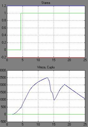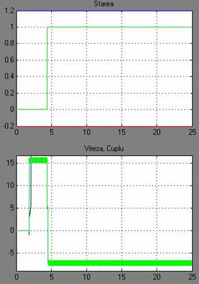 Fig. 7 Parametrul stare, viteza SAI si cuplul MSMPI.