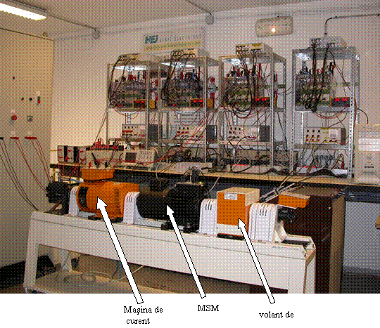Masina de curent continuu (3 kW / 1500 rpm), este alimentata cu PWM, controlul realizându-se de catre controlerul DS1104 dSPACETM (PowerPC 603e / TI DSP TMS320F240).