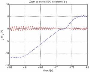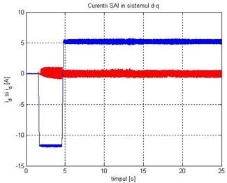 Curentii Id si Iq, din statorul MSMPI, obtinuti experimental se pot vizualiza in Fig. 6 a). Se observa ca acestia au oscilatii in jurul valorilor curentilor de referinta. Pina la momentul pornirii motorului Id si Iq sunt nuli. In regim de motor Id ref=0 iar este limitat la Iq ref . In regim de generator Id ref=0 iar Iq ref=5. Acestia se pot vizualiza in detaliu in momentul trecerii din regim de motor in regim de generator in Fig. 13 b).