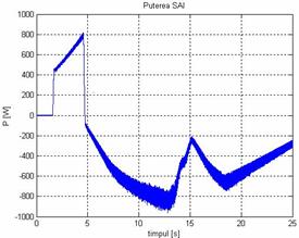 Atâta timp cât SAI functioneaza in regim de motor, puterea este pozitiva si creste proportional cu viteza. In regim de generator puterea isi schimba sensul, deci se furnizeaza energie catre bus-ul de tensiune continua (bateria). La fel ca în regim de motor, amplitudinea este proportionala cu viteza, variatiile puterii regasindu-se in variatiile vitezei, cum se vede in Fig. 14.