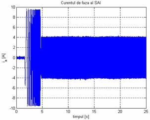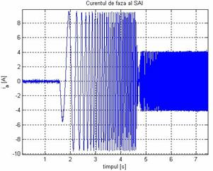 În Fig. 15 a) se prezinta curentul statoric pe o faza, obtinut experimental. La pornirea SAI, in regim de motor, amplitudinea acestuia este de 9,5 A, iar in regim de generator amplitudinea este de 4 A. La o vizualizare detaliata a acestuia se observa ca are o variatie sinusoidala si in momentul trecerii din regim de motor in regim de generator curentul se defazeaza cu 1800 (Fig. 8 a)).