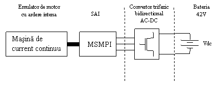Se urmareste realizarea unui stand experimental de laborator pentru studiului comportarii MSMPI in aplicatii SAI in laboratorul de Micomotoare, in laboratoarele Universitatii Tehnice din Cluj-Napoca. Modelul experimental de laborator format din MSMPI alimentat si comandat prin invertor si un emulator de motor cu ardere interna (masina de curent continuu) este prezentat schematizat in Fig. 17.
