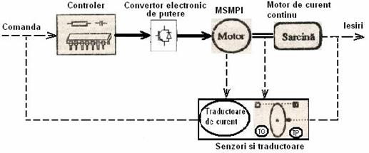 blocul reprezentat de senzori si traductoare (tahogeneratoare, traductoare de pozitie si de curent), care are rolul de a monitoriza comportarea sistemului oferind un semnal feed-back controlerului.