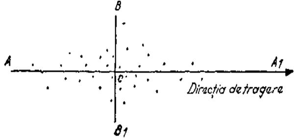 b) In cazul tragerii unui mare numar de cartuse (proiectile), punctele de incidenta se dispun simetric fata de centrul īmprastierii.