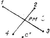 pentru patru lovituri: se gaseste, asa cum s-a aratat mai sus, punctul mediu al loviturilor pentru trei lovituri oarecare; se uneste acest punct cu al patrulea punct de incidenta si se īmparte distanta dintre ele īn patru parti egale ; punctul de divizare cel mai apropiat de punctul mediu al loviturilor pentru trei lovituri.l!yjOīj^pentru patru lovituri (fig. 34 "c"); cānd cele patru puncte sunt dispuse simetric, se unesc laturile opUSe prin linii drepte, iar intersectia lor va fi punctul mediu al loviturilor (fig. 4 "d") ;