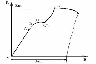 Forta axiala F este dezvoltata de sistemul de actionare al masinii de īncercare _]n generalhidraulic) care permite vizualizarea īn orice moment a valorii fortei, iar alungirea este masurata cu un eztensiometru unele masini de īncercare la tractiune sunt prevazute cu un sistem de verificare, de īnregistrare a variatiei fortei de tragere cu deformatiam permitānd trasarea unor diagrame conform fig. 2 care poarta numele de caracteristica epruvetei. Prin aplicarea fortei F se dezvolta īn material o stare de tensiuni axiala caracteristica prin valoarea tensiunii.