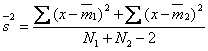 Formulele de la numarator ne sunt cunoscute de la calcularea dispersiei (sumei de patrate referitoare la cele doua grupe), iar N1 si N2 sunt efectivele celor doua esantioane.